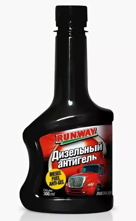 Дизельный антигель RUNWAY RW3035 применяется для снижения уровня загустения дизельного топлива в двигателях автомобилей. Данная жидкость работает при температуре до –40° С и эффективно предотвращает нарост восковых кристаллов. Также это изделие расширяет предельный диапазон фильтруемости дизельного топлива до –36° С. RUNWAY RW3035 поставляется в пластиковых емкостях по 300 мл. Производитель гарантирует совместимость данной жидкости с любым видом дизельного топлива. Антигель не следует использовать для оттаивания уже замерзшего топлива.