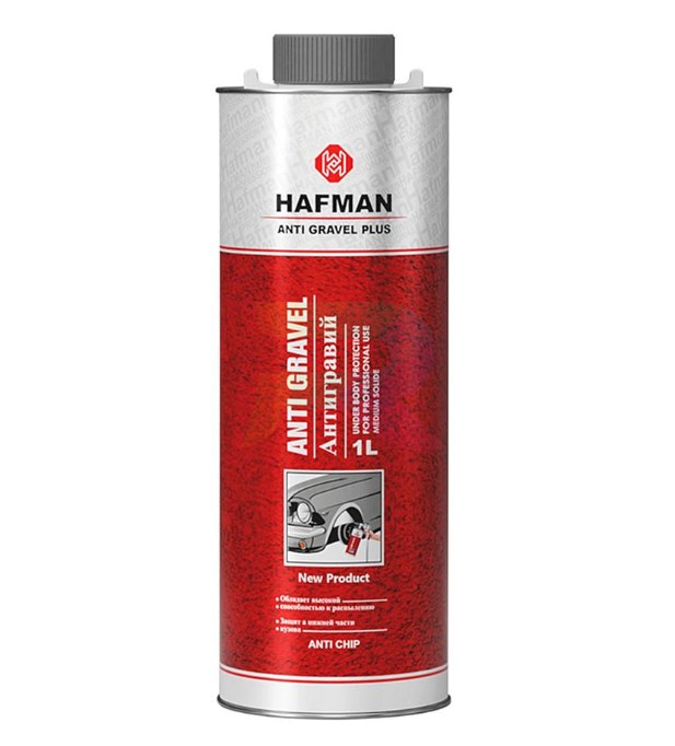 Профессиональное антигравийное покрытие Hafman Anti Gravel Plus на основе каучука и синтетических смол для зашиты днища и порогов кузова автомобиля от ударов камней, воздействия влаги окружающей среды. Продукт образует надежное, достаточно эластичное и устойчивое к истиранию покрытие, превосходно противостоит ударам камней и песка. Высохшее покрытие устойчиво к бензину, маслам и дорожным реагентам. Антигравий эффективно защищает нижние части кузова автомобиля. После высыхания может быть окрашен автоэмалями. Наносить на чистые, сухие и обезжиренные поверхности без ржавчины. Рекомендуемая толщина нанесения 1 мм. Наносится антигравийным пистолетом.