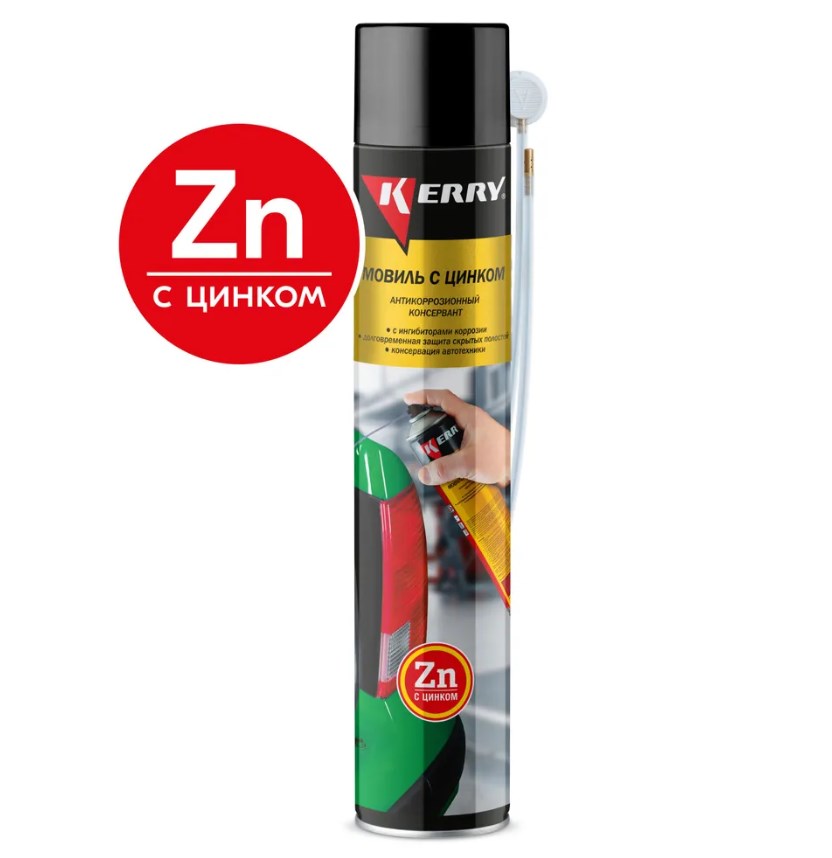 Мовиль KERRY с цинком, консервирующий состав KR-948-1 предназначен для долговременной антикоррозионной защиты скрытых полостей кузова автомобиля (лонжеронов, порогов, пола салона, корпусов дверей, стоек и т.п.). Применяется для временной антикоррозионной защиты наружных поверхностей автомобиля (днища, порогов, арок колес и т.п.), используется для консервации автотехники и металлических изделий для длительного хранения и транспортировки.