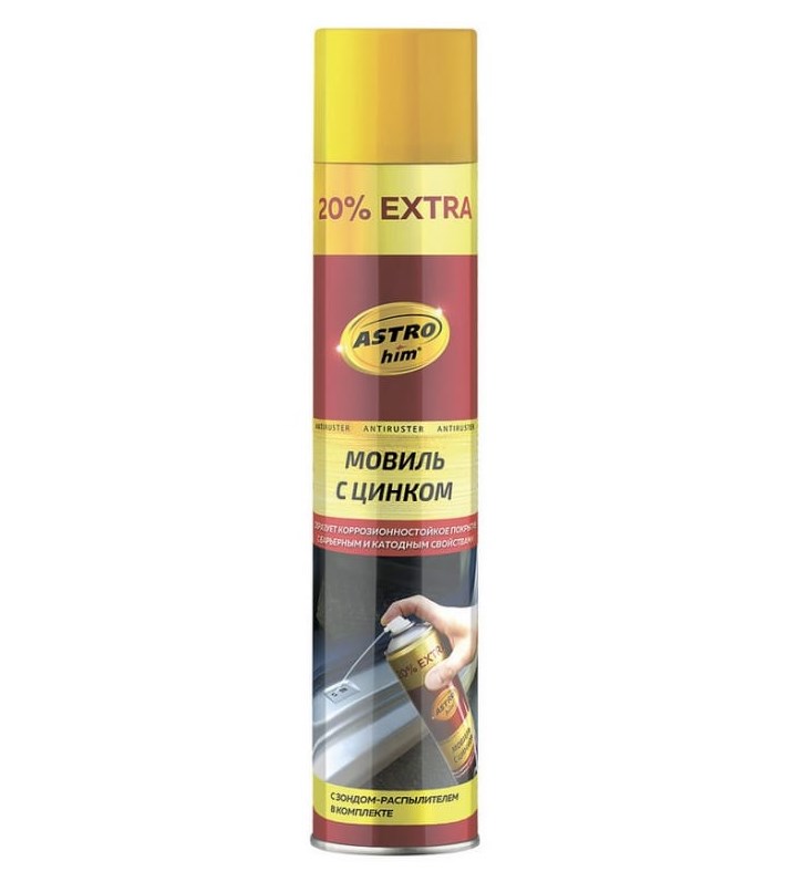 Мовиль с цинком ASTROhim аэрозоль, 1000мл AC-4808 используется для надежной защиты скрытых деталей автомобиля от коррозии. Средство наносится на днище кузова, арки колес, в места стыков между панелями кузова. Используется для антикоррозионной обработки сельскохозяйственной и производственной техники.
