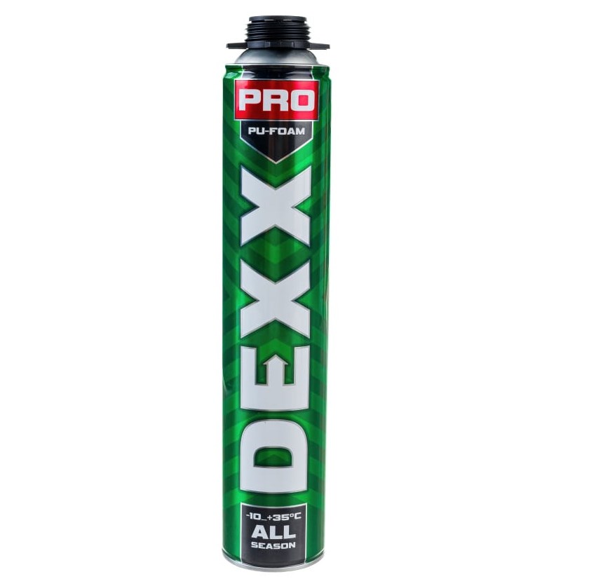 Полиуретановая монтажная пена DEXX для монтажного пистолета, всесезонная, 750 мл 41126 применяется для монтажа и герметизации оконных и дверных блоков, подоконников, а также для изоляции проводки и технических коммуникаций, тепло- и звукоизоляции, заполнения швов, щелей, пустот. После затвердевания не пожароопасна и не токсична. Можно использовать в широком температурном диапазоне: от -10 до +35°С.