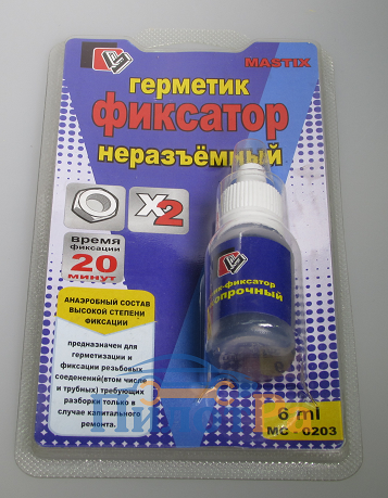 Герметик фиксатор резьбы MASTIX неразъемный 6 мл флакон мс0203 - предназначен для герметизации и фиксации резьбовых соединений (в том числе и трубных)требующих разборки только в случае капитального ремонта. Также может использоваться для фиксации и герметизации соединений вида вал-втулка, фиксации подшипников без прессовой посадки. Полимеризуется в зазорах до 0,4 мм между поверхностями без доступа воздуха.