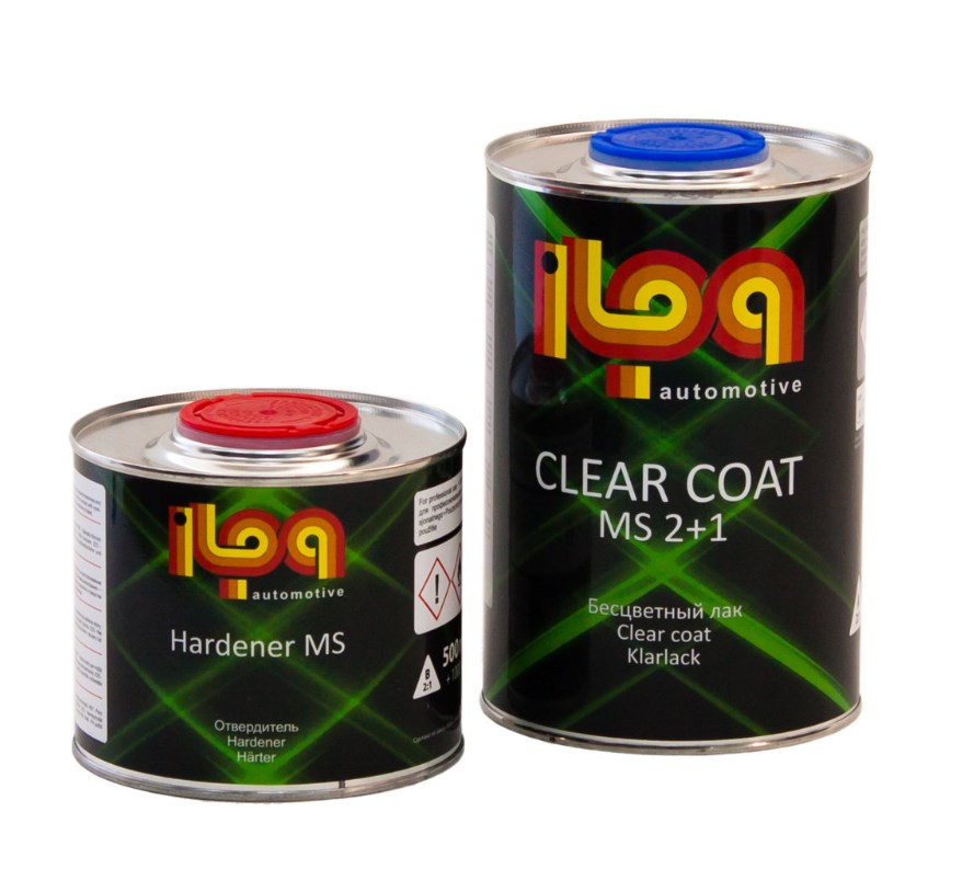 Прозрачный двухкомпонентный быстросохнущий, автомобильный акриловый лак Ilpa MS 2+1 Clear Coat с высоким содержанием сухого остатка и низким содержанием летучих соединений. Продукт идеально подходит для лакирования в неблагоприятных условиях. Создает глянцевое покрытие, устойчивое к царапинам. Идеален для местного и полного ремонта лакокрасочной поверхности. Устойчив к воздействию ультрафиолетовых лучей и атмосферных факторов. Создает твердое покрытие высокой степени блеска. Наносится в 2 слоя. Механическая обработка лака возможна через 24 часа при температуре сушки 20 °С., полная полимеризация наступает через 72 часа. При температуре сушки 60 °С. полное высыхание происходит через 30 минут. Время межслойной сушки 5 - 10 минут.