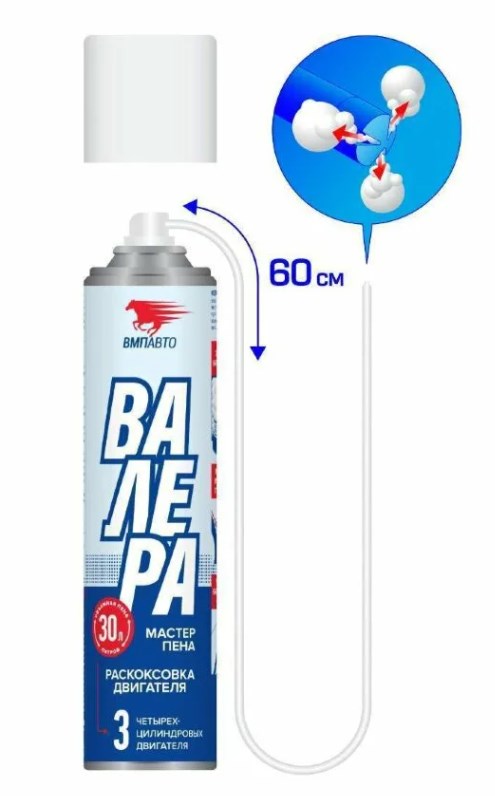 Валера мастер-пена — это инновационная пенная раскоксовка для очистки клапанов, впускного тракта, камеры сгорания, компрессионных поршневых колец. Без едкого запаха. Пенный состав предназначен для очистки бензиновых и дизельных ДВС от высокотемпературных углеродистых отложений: нагар, шлам. Удаляет отложения на клапанах, во впускном коллекторе, верхней части поршня, в области первого поршневого кольца. Может использоваться для очистки клапана EGR, турбокомпрессора и иных деталей из алюминия, стали, чугуна. Очищает лучше за счет 5 циклов смачивания, растворения и смывания нагара.