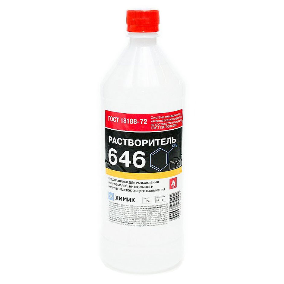Универсальный растворитель 646 Химик предназначен для разбавления различных лакокрасочных материалов, обезжиривания поверхности металла перед окраской, а также для очистки инструментов. Может использоваться для разжижения составов на органической основе, нитроцеллюлозных, лаков и шпатлевок до нужной консистенции, а также некоторых грунтовок. Используется в кузовном автомобильном ремонте, строительстве и на производстве при окрашивании поверхности.