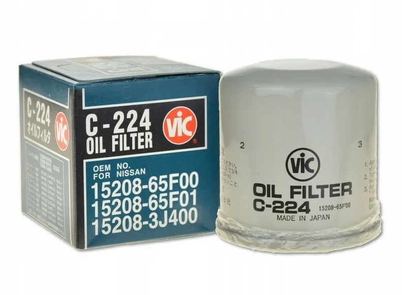 Японский масляный фильтр VIC C-224 для автомобилей Ниссан (Инфинити) с моделью двигателя:HR16DE, MR16DDT, MR18DE, MR20DE, MR20DD, HR12DE, HR15DE, QG16DE, QG15DE, QG18DE, QR20DE, QR25DE, KA20DE, KA24DE, VQ25DE, VQ25HR, VQ35DE, VQ30DET, VQ35DE, VQ37VHR, VQ35HR, BR06, BR06-T, H4M. Масляный фильтр VIC C224 сделан в Японии - это гарантирует высокое качество изготовления. Фильтры производителя VIC точно соответствуют конструкции оригинальных фильтров авто-производителей, благодаря плотному фильтрующему элементу обеспечивают превосходящее качество фильтрации моторного масла. Подходит на следующие модели автомобилей производителя Nissan (Infinity): Primera, Sunny, Bluebird, Gloria, Wingle, Pulsar, Avenir, Tino, Silvia, Leone, Murano, Teana, X-Trail, Almera, Pathfinder, FX35, FX45, Serena, Wingroad, Liberty, Cedric, Skyline, Presage, Vanette. Аналогичен: 152085758R, 1520865F0A, 1520865F0B, 152089F60A, 152089F60B, 1520865F00, C224J, C-1823, LS965, LF502, OG 186 HQ, 4ND-110, w6025, w67/1.