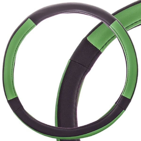 Описание товара: Оплетка руля комбинированная M = 38см Черная экокожа + вставка Зеленая