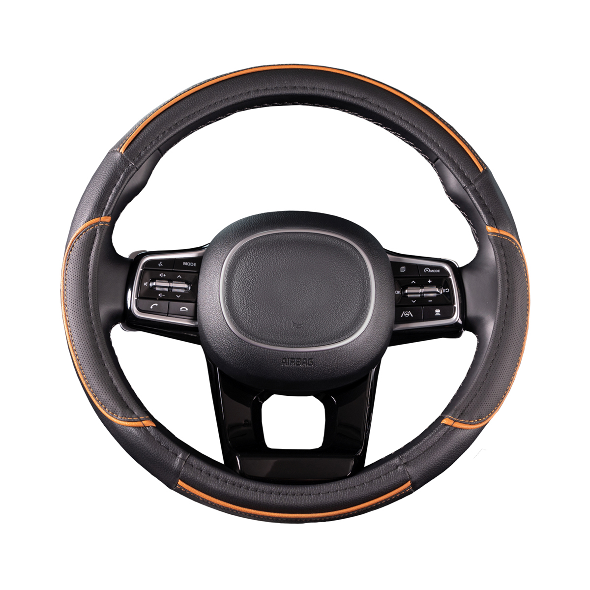 Купить Оплетка руля комбинированная M = 38см Черная экокожа + линия Оранжевая