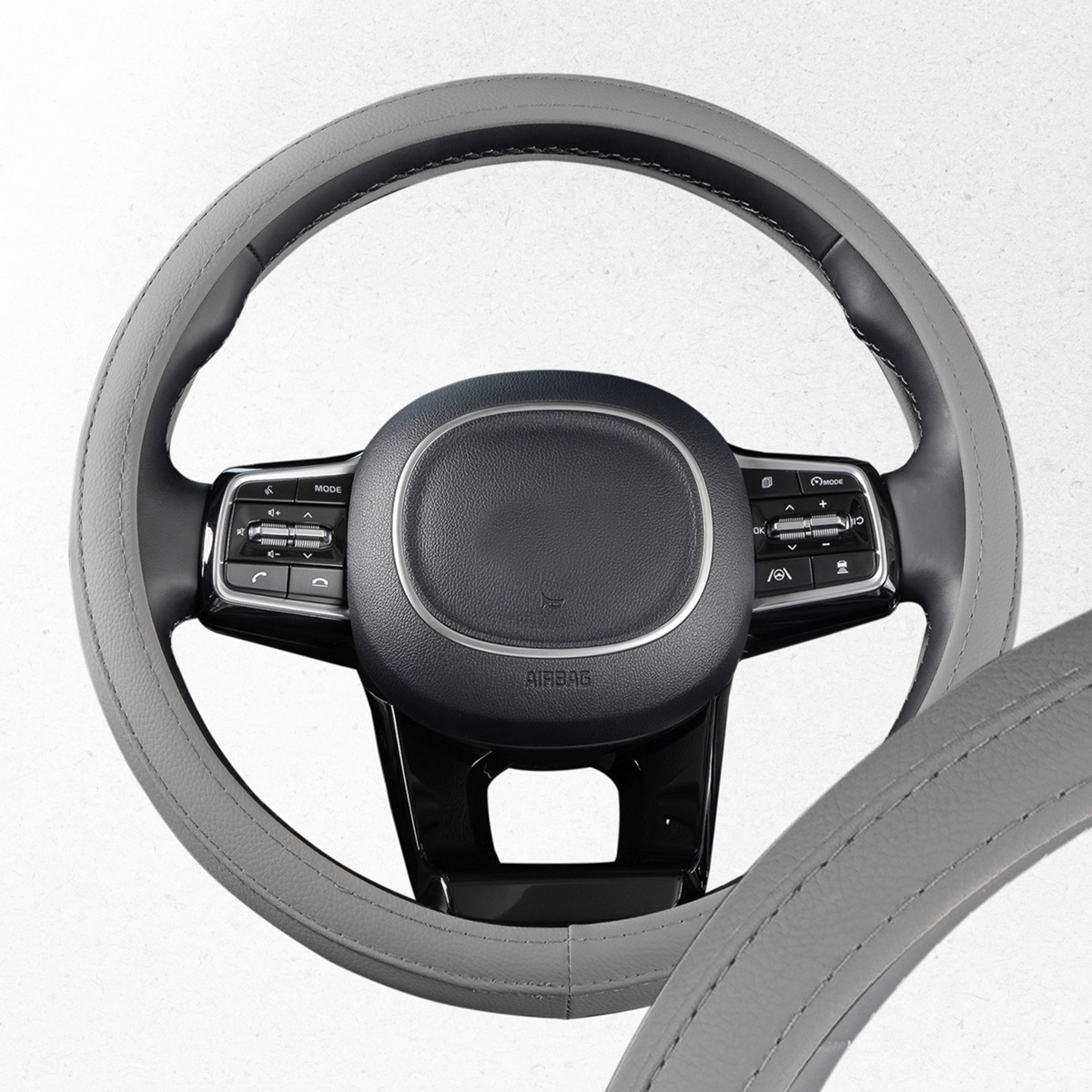 Описание товара: Оплетка руля комбинированная M = 38см экокожа Серая 480