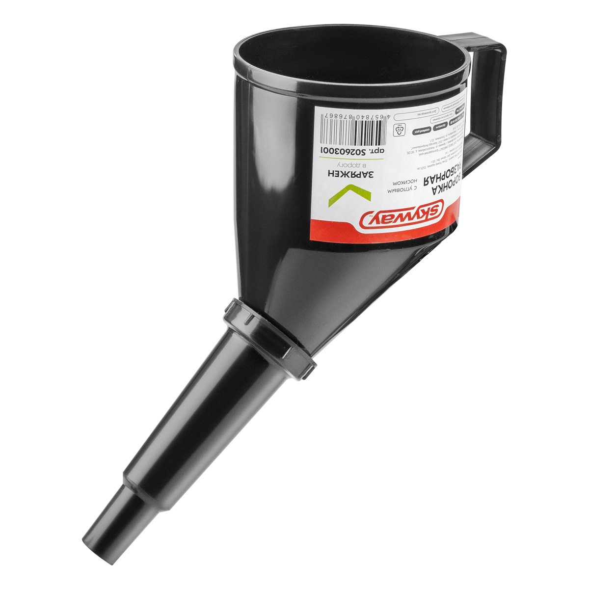Воронка разборная с угловым носиком - удобная воронка для переливания жидкостей имеет разборную конструкцию, благодаря чему можно тщательно промыть все части воронки. Угловой носик и ручка облегчают процесс переливания. Воронка применяется для переливания разнообразных жидкостей: от воды до моторного масла.
