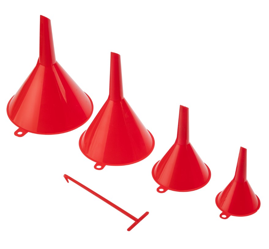 Воронка комплект 4 шт. – простые, легкие и компактные приспособления предназначены для перелива топливных и технических жидкостей. Воронка обеспечивает быстрый и чистый перелив жидкости, избавляя пользователя от риска испачкаться.