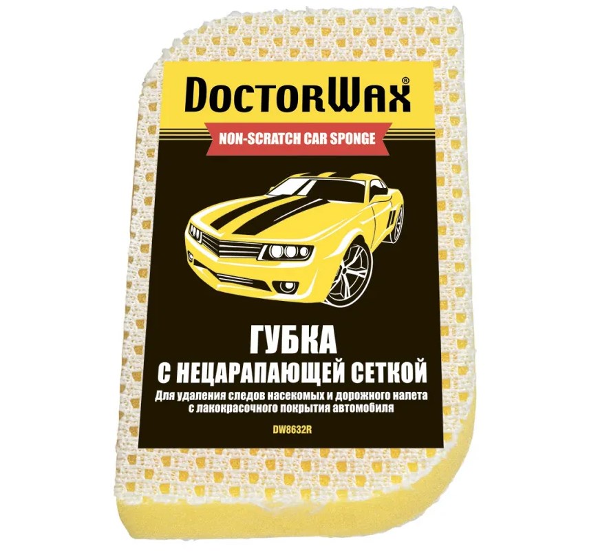 Описание товара: Губка нецарапающая двухсторонняя с сеткой DoctorWax DW8632R