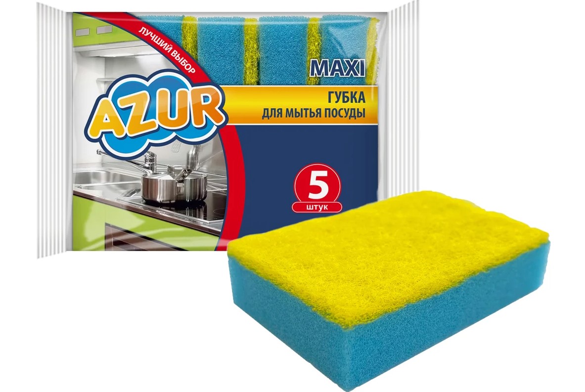 Губки AZUR МАКСИ, 5 шт. 030170 предназначена для мытья различных видов посуды.