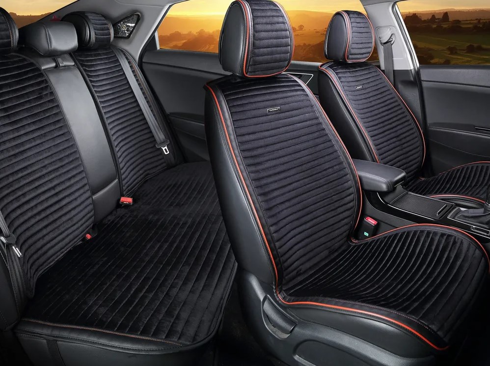 Описание товара: Накидка на сиденье универсальная Монако Monaco Комплект Перед/Зад Черная + Красная строчка