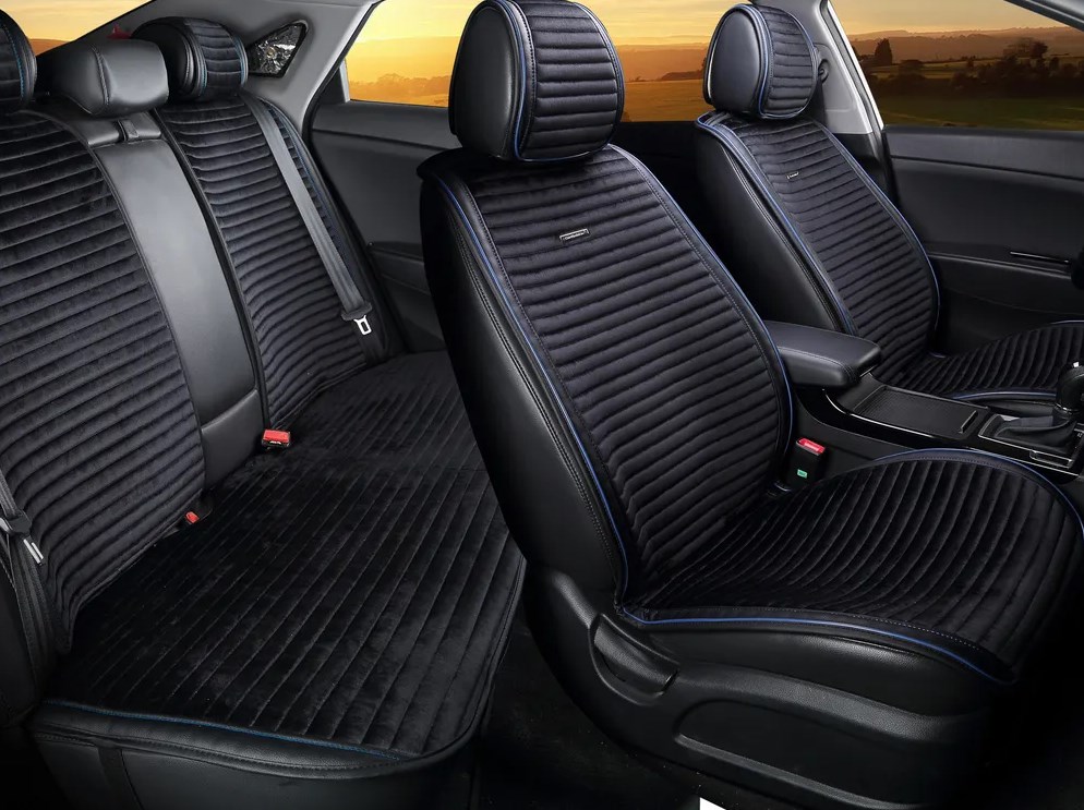 Купить Накидка на сиденье универсальная Монако Monaco Комплект Перед/Зад Черная + Синяя строчка