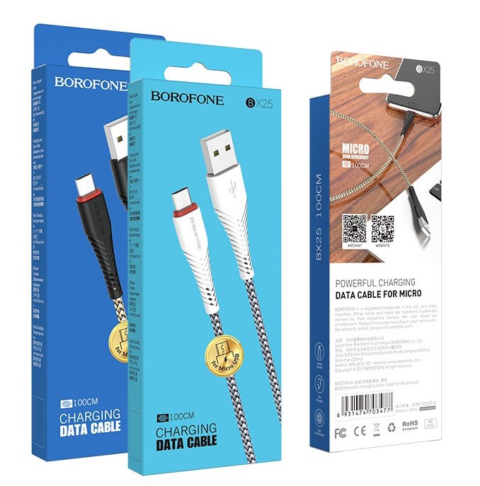 Купить Кабель micro USB Borofone BX25 1 метр в коробке 2,4А