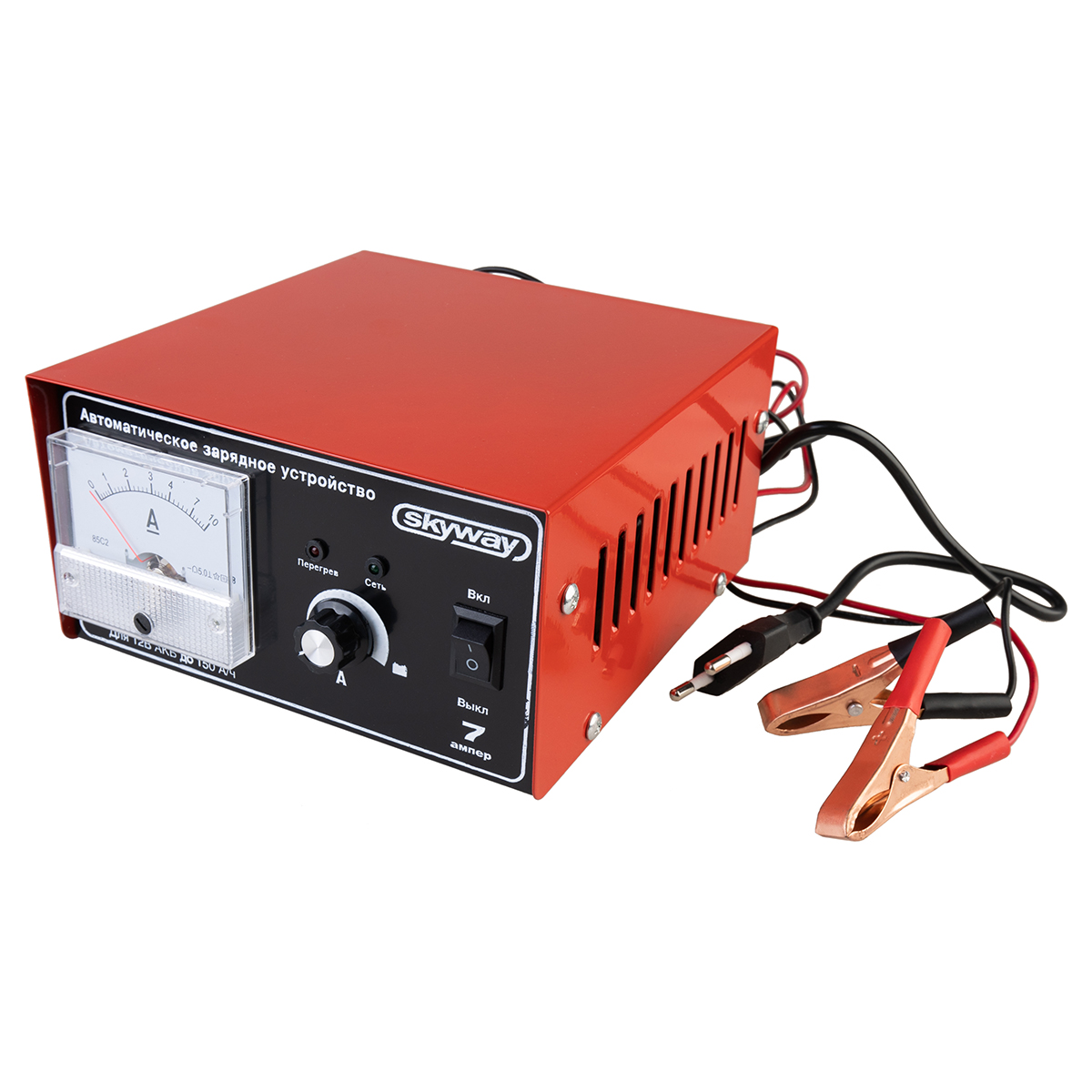 Зарядное устройство автоматическое импульсное до 7,0А для АКБ 12В до 95А*ч SKYWAY стрелочное - зарядное устройство для всех типов аккумуляторных батарей, в том числе необслуживаемых. Заряжайте аккумулятор, не снимая его с автомобиля. Может использоваться в качестве источника питания. Устройство снабжено защитой от перегрева и нагрузок, а также от короткого замыкания и перегрева. Питается от сети 220В. Управление полностью автоматическое.