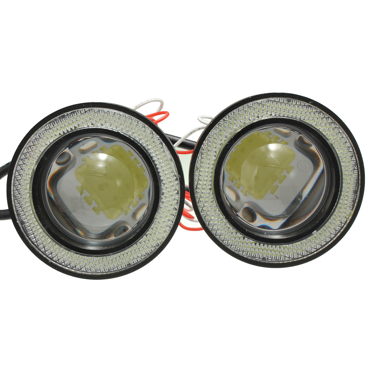 Купить фара противотуманная светодиодная + ангельские глазки линза 12в 76мм - 2шт