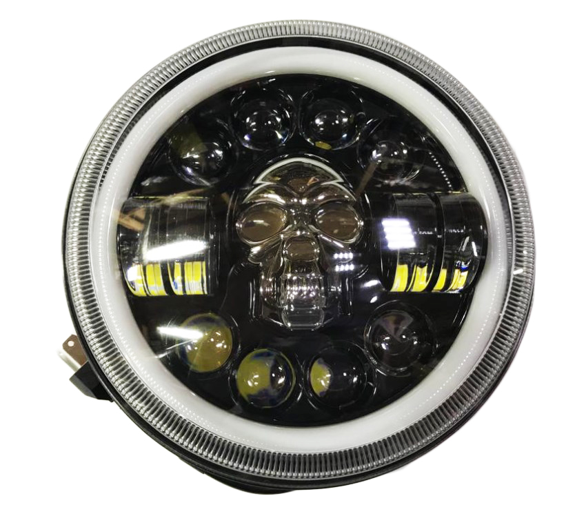 38406, Фара светодиодная НИВА ВАЗ УАЗ Ближний/Дальний + ДХО + Поворотники + Череп разные цвета 2шт 090