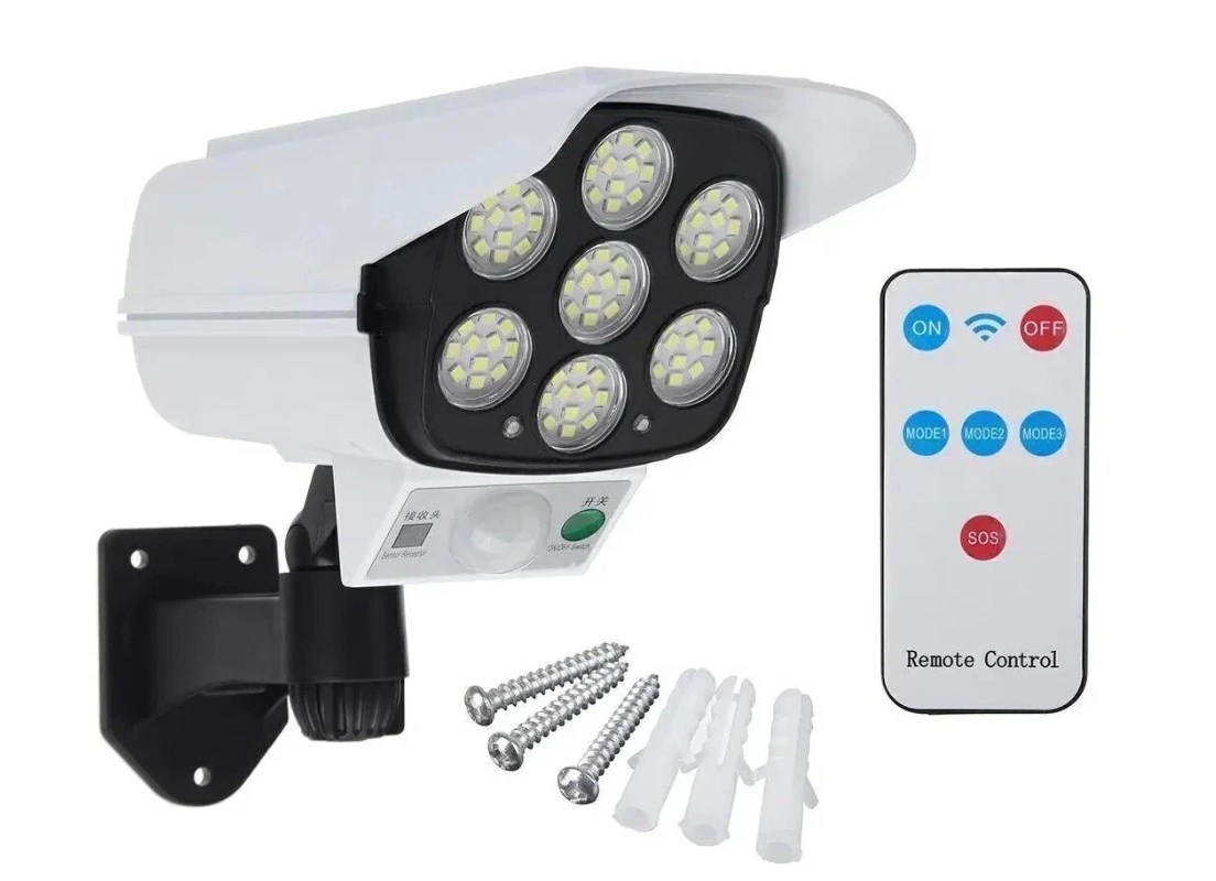 Описание товара: Фонарь уличный Солнечная батарея 77 Led + пульт + сенсор 2178