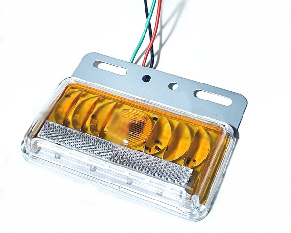 Описание товара: Фонарь габаритный PL 24В Квадрат Желтый Линза + ВНИЗ Белый на металле 1шт