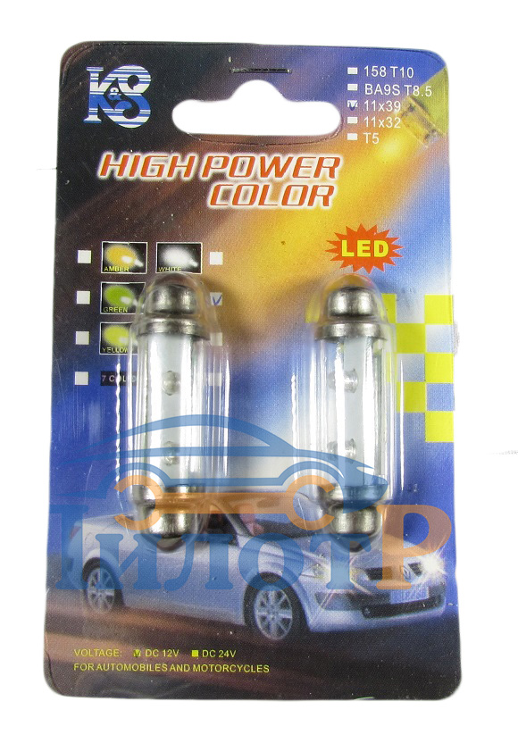 Описание товара: Лампа 12В (2-х цокольная 11-39) 5Вт диод синий 2шт