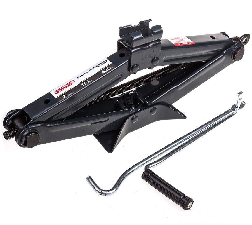 Домкрат механический ромбический 2т h 110-420мм SKYWAY в сумке- металлическая конструкция узлов и агрегатов обеспечивает высокую надежность и отказоустойчивость. Резиновая накладка на опорной части изделия при подъёме автомобиля оберегает поверхность кузова и рамы от повреждений. В качестве несущих элементов используется четыре шарнирно-соединительных рычага, образующих ромб. Подъем груза происходит за счет изменения углов между рычагами, что приводит к увеличению или уменьшению расстояния между подхватом и опорной площадкой.