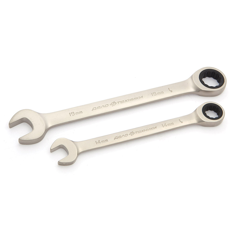 Комбинированный трещоточный ключ из хромованадиевой стали с надёжным 90-зубцовым храповым механизмом в накидной части. Ключ трещоточный ускоряет отворачивание и заворачивание крепежа как в обычных условиях, так и в условиях ограниченного пространства. Обеспечивает высокий крутящий момент и минимальный угол возврата — 4º.