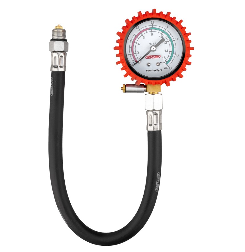 Компрессометр бензиновый гибкий SKYWAY (со шлангом) в защитном чехле - гибкий бензиновый компрессометр измеряет компрессию в цилиндрах бензиновых двигателей. Диагностирует герметичность камеры сгорания, вкручиваясь в свечное отверстие для точного измерения. Проводит проверку компрессии в труднодоступных местах. Выявляет неисправности цилиндропоршневой группы, оценивая состояние поршневых колец, зазоров и клапанов.