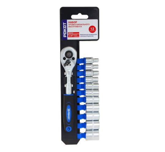 Купить набор головок рокот 12 предметов + ключ трещотка 1/4 4-14мм 689-010