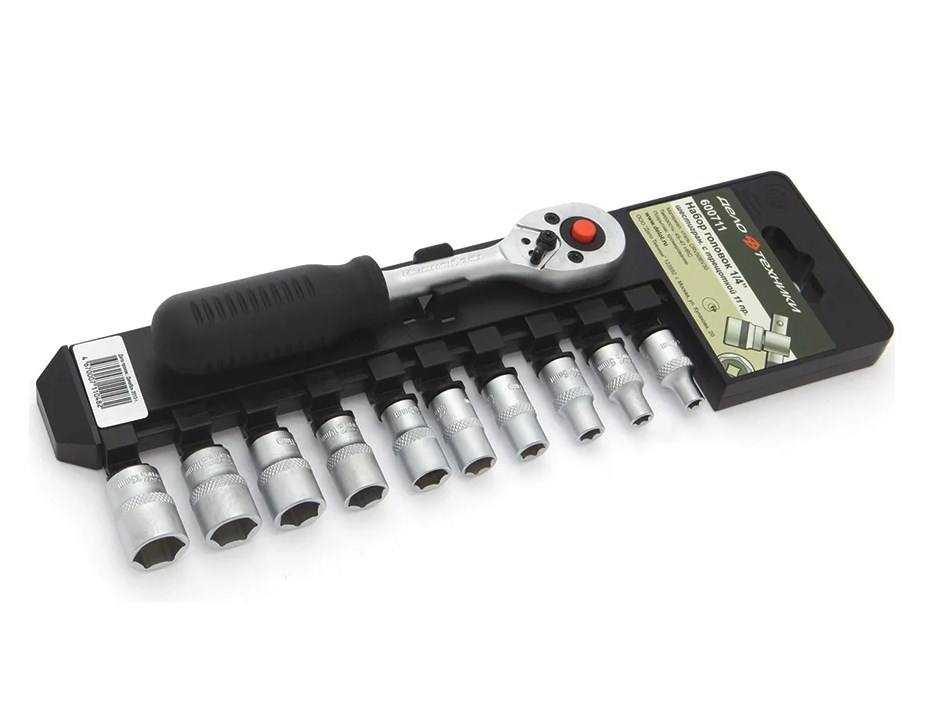 Описание товара: Набор головок Дело Техники 1/4 11 предметов 4-13мм + трещотка 600711