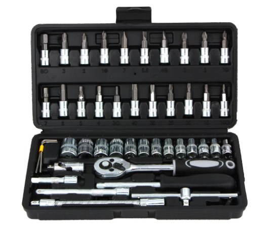 Купить набор инструментов 46 предметов в кейсе + вороток + трещотка 1/4