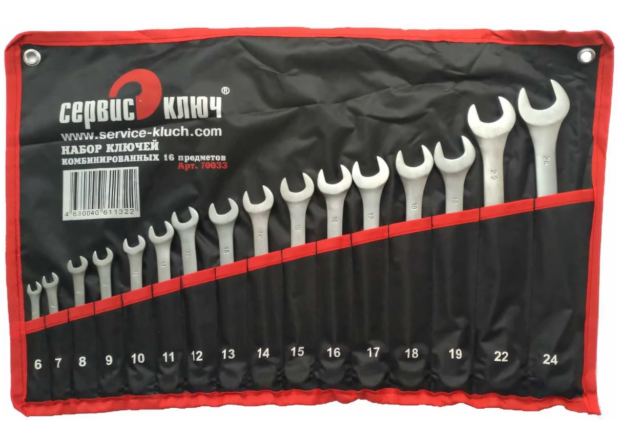 Описание товара: Ключи рожково-накидные Сервис ключ 16 предметов 6-24мм 70033