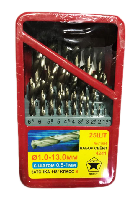 Описание товара: Сверла набор EX по металлу 25шт 1,5мм-13мм шаг 0,5-1мм металл красный кейс