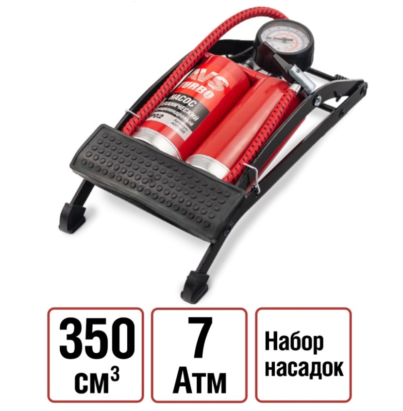 Описание товара: Насос ножной AVS 2 цилиндра Усиленный 7 атм шланг 50см FP02