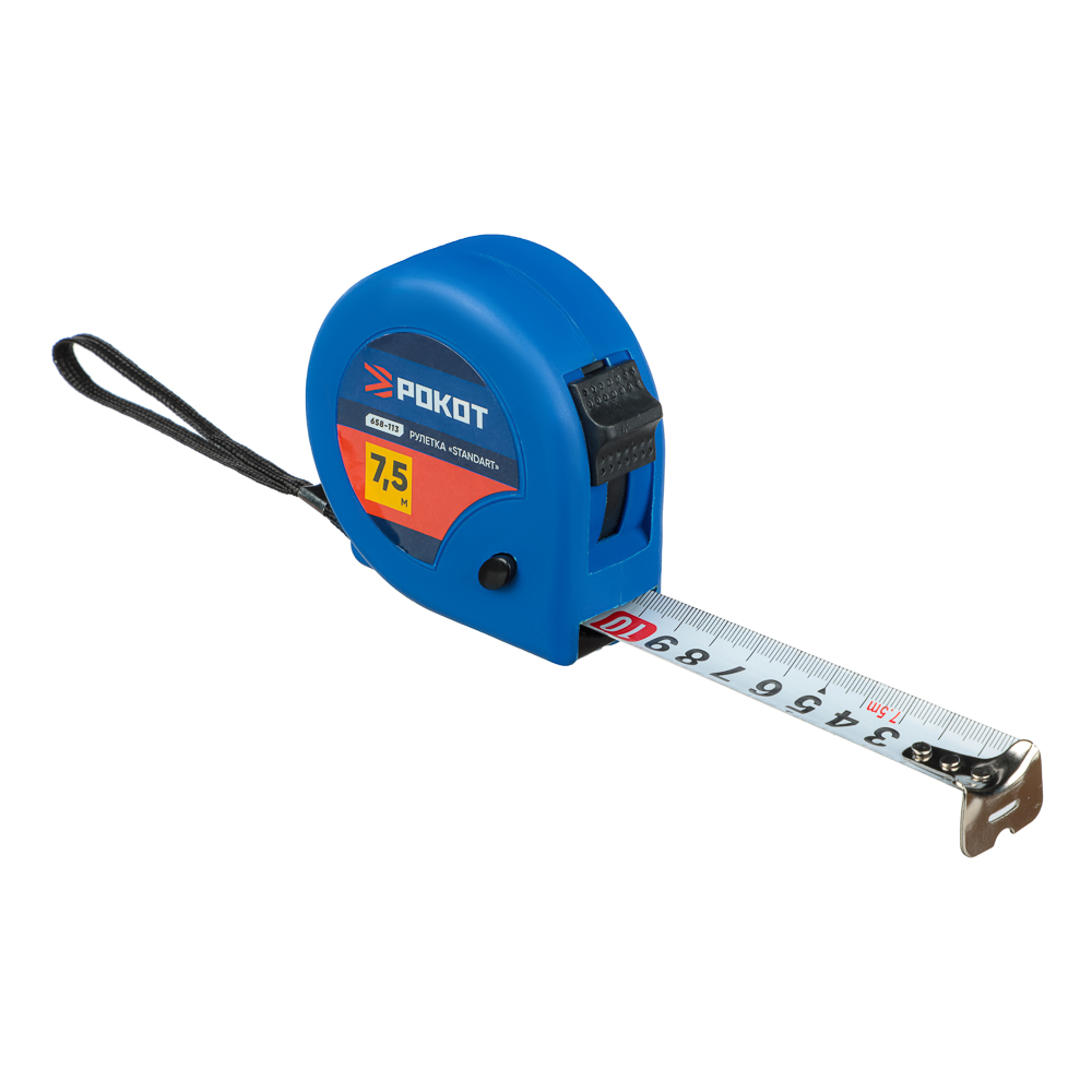 Рулетка Рокот Standart удобный и надежный инструмент для измерения длин и расстояний. Корпус рулетки выполнен из прочного ABS пластика, что обеспечивает ее долговечность и надежность. Лента изготовлена из инструментальной стали и имеет ширину 25 мм и длину 7,5 метров. С помощью этой рулетки вы сможете легко и точно измерять расстояния и длины в любых ситуациях.
