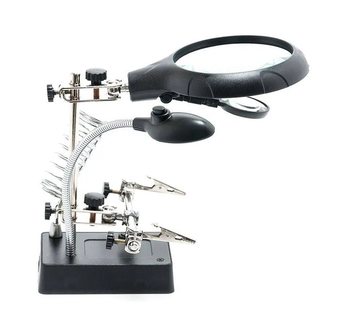 Купить держатель для пайки третья рука + лупа + подсветка 800