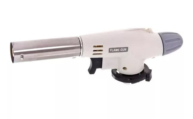 Портативная профессиональная газовая горелка с пьезоподжигом № 920, цвет белый. Горелка газовая универсальная представляет собой специальную походную насадку прочной конструкции на портативный одноразовый пропан-бутановый баллон. Поджиг осуществляется при помощи пьезоэлемента, вмонтированного в курок. Мощность пламени от 10 до 100 мм, регулируется при помощи специального торцевого регулятора. Газовая туристическая насадка способна выполнять массу разных задач и необходима в любом хозяйстве, она легко справится с размораживанием замерзших зимой замков, опаливанием дичи на охоте, разогреве пищи на природе и дачных участках, пригодится при пайке медных труб, при обжиге кабелей или проводов, незаменима при розжиге камина, костра и т.д. Она поможет быстро разогреть угли для мангала, кальяна или кружку с чаем. Является спортивным и туристическим инвентарем и походной печкой, будет необходимым подарком как для себя, так и любому рыбаку, охотнику, туристу и просто путешественнику. При работе с горелкой во избежание т