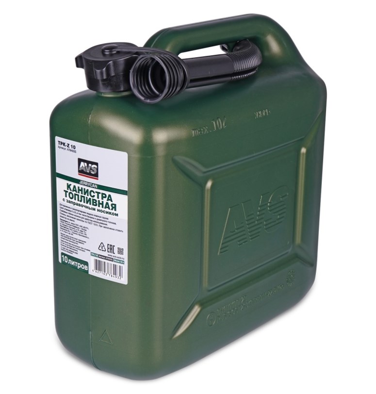 Купить канистра для топлива 10 литров avs зеленая + воронка пластик сертифицированная