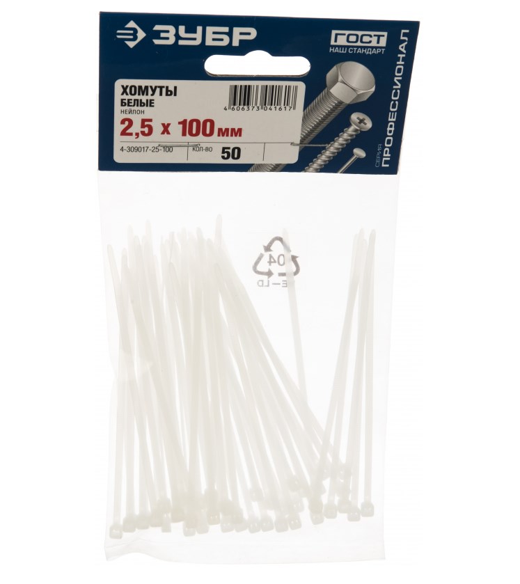 Описание товара: Хомут ленточный нейлон стяжка 100*2,5мм Зубр белые Усиленные 50шт 309017-25-100