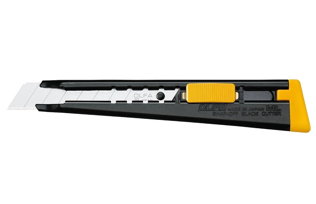Если Вам нравится OLFA OL-180, но нужна большая сила реза, тогда универсальный нож с металлической ручкой OLFA ML шириной 18 мм — то, что вам нужно. Отличается тонким профилем, что позволяет носить его всегда с собой в кармане или сумке для инструментов. Стальная рукоятка устойчива к коррозии и химическим веществам. Предусмотрена автоматическая фиксация лезвия.