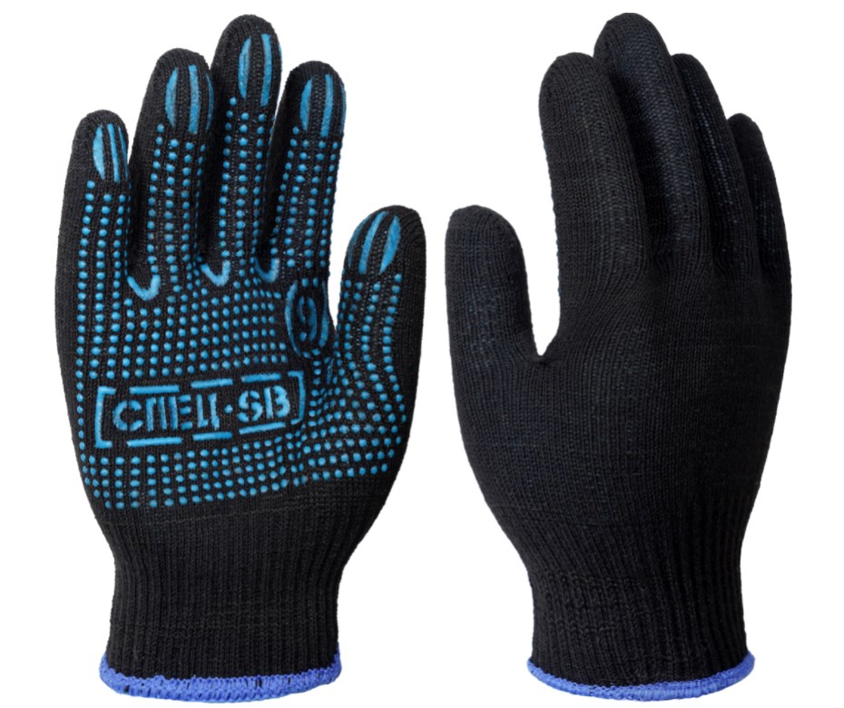 Купить перчатки х/б пвх с точкой спец-sb №9 черные плотные