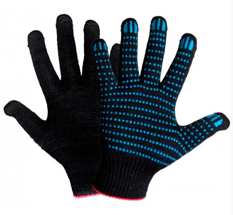 Купить перчатки х/б пвх с точкой премиум черные