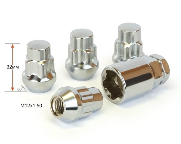 Купить секретки гайки 12*1,5 4шт закрытые + ключ 19/21