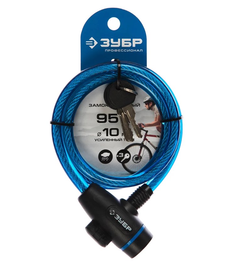 Купить замок тросовый зубр 3 ключа d=10мм длина 95см 37261-95